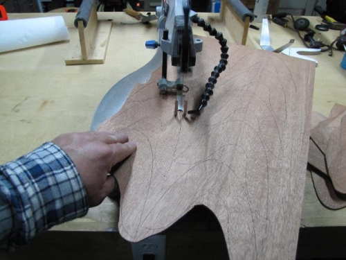 Drew out all the leading edges on the 1/8" ply. I realized at this point i did not buy enough ply. I could only draw out 44 shapes using my form block. I need another 20. Will need to go back to ACS. Cut the 2'x4' down to smaller size to make it easier to handle cutting out the shapes. Nuff for today. I'm worn out. Just kidding. Wish i could have done more but have some other things i must do. I should be back out tomorrow.