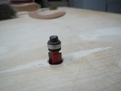 So i bought some screws at Ace on the way home from work. I took the pad off the router and used it to locate mounting holes on the bench. I then drilled four holes the same diameter as the screws i bought. I started to install the router under neath and found the holes did not line up perfectly. I guess i should have marked the under side of the bench and drilled from there. Dooh....... I tried drilling the holes alittle larger but then hit the router metal and took out the threads. I removed to router and retapped them with 1/4-20 threads. I did not have any 1/4-20 screws so i'll have to wait till tomorrow to get some.