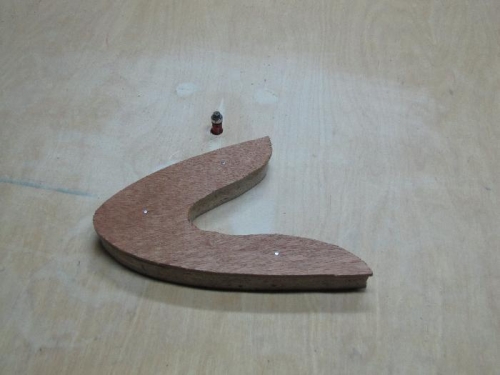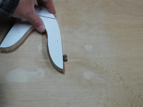 Today i started the final shaping of the leading edge nose gussets. I nailed a rough cut leading edge gusset to the leading edge form. Then i turned on the router and followed the form with the laminate bit. After done i carefully pryed off the gusset from the form. It worked great. I checked the first one for a fit on the jig. Perfect fit. I cut several gussets tonite and will finish the rest tomorrow.