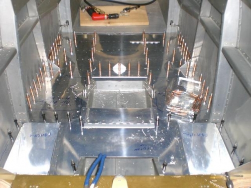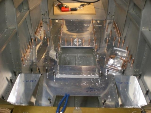 There are a lot of holes in the floors. After completing the "fitting" of the floor panels I used the panels to transfer the screw and rivet holes into the floor supports. Good work session.
