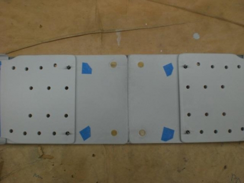 Back from our Israel vacation and now it is time to get going again. Started putting the parts together. They are all primed and ready to go. Not a long work session, but I got the parts located and then set the 4 flush rivets on the HS-702 front spars.