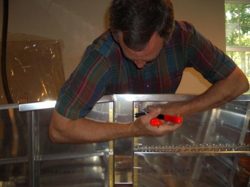 Stripped paint from fuselage interior covers due to poor painting. Re-primed parts. Matchdrilled, deburred, and riveted upright cap strips to center section. Sanded fuselage interior to accept primer.