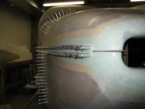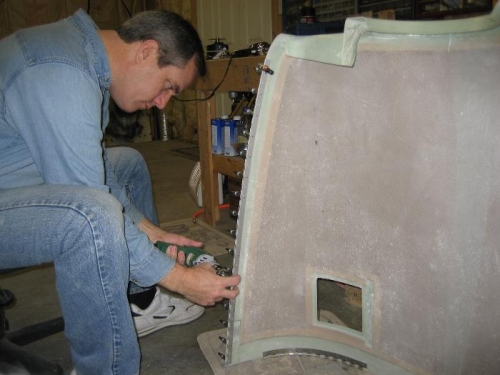 Finished making adjustments to cowl to optimize gaps at joints. Applied epoxy between hinge halves and cowl halves and clecoed everything in place.