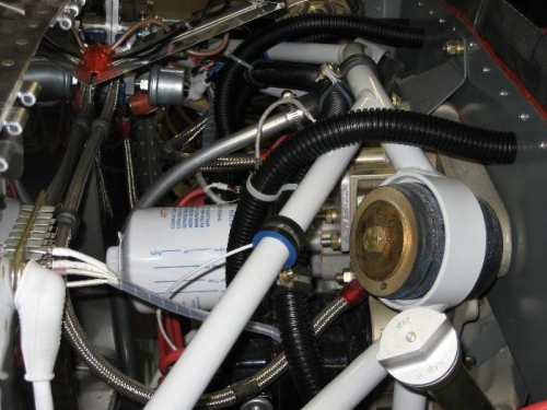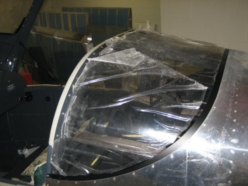 Finished cleaning up firewall forward wiring. Matchdrilled hinge halves to nose gear leg fairing. Set rear window in place and screwed to rollbar.