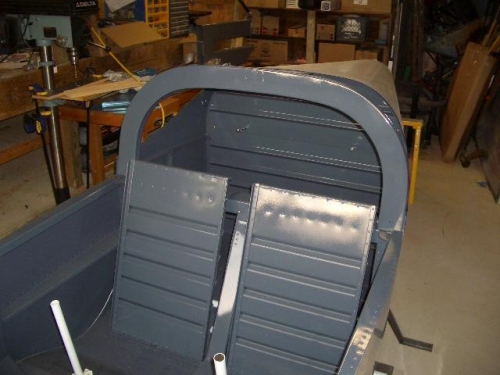Finished assembling and painted rollbar and seatbacks. Bolted rollbar to longerons.