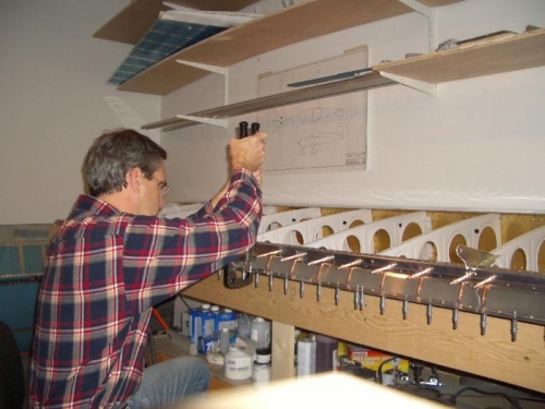 Finished riveting the right wing flap and aileron gap fairings to the top skin and rear spar. Started riveting the left wing top skin to the rear spar.