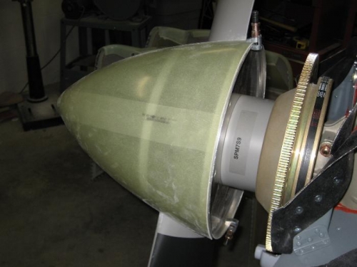 Cut prop blade notches in spinner. Matchdrilled spinner to spinner plates.