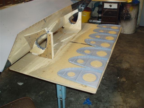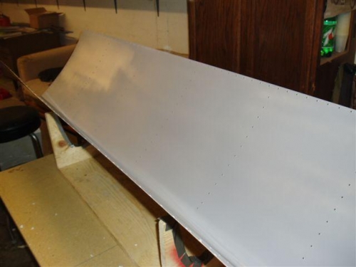 Today we rolled the bus out of the shop and etched and primed all of the L.E. rib skins and top wing skins