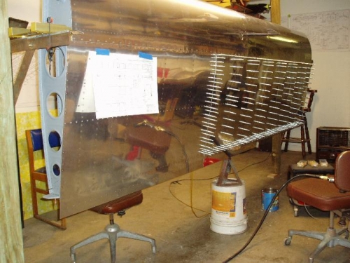 It took all day to rivet the top skin to the wing skeleton.