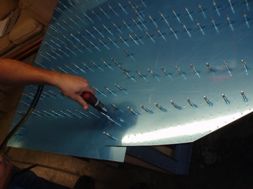 Tonight we drilled all the holes in the bottom skin in the center fuse
