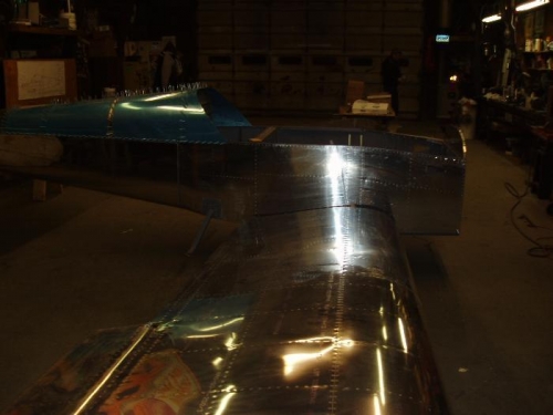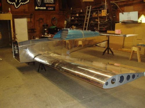 Today we hung plum bobs on the wings and aligned them. We had to remove a small amount of metal from the rear spar attach bracket to get them to go back far enough. They are ready for drilling now.