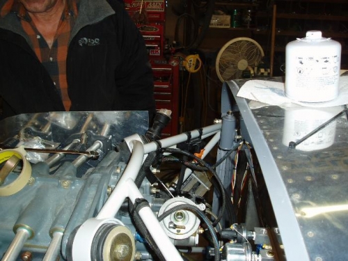 Dave worked on the oil cooler lines and Nick worked on the wing tips.