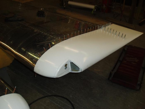 Nick drilled left wing tip reinforcement strips to the wing and finished the strobe light hole