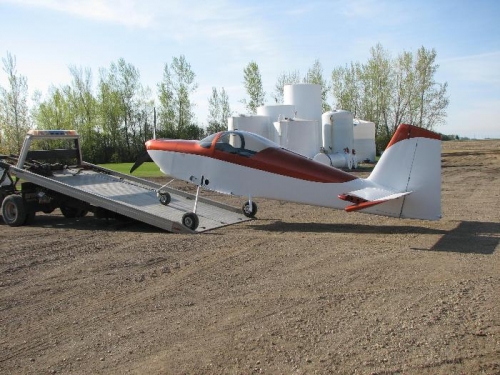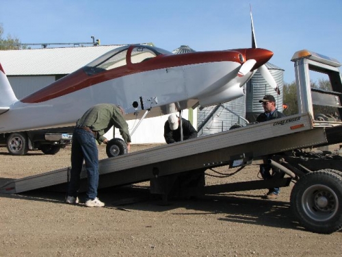 Dave, Dan and Uncle Reg loaded the plane on a car hauler and took it to the hangar in Wahpeton.
