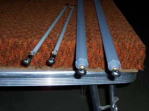 Riveted ends on pushrods. Primed external surface of stick to bellcrank pushrod.