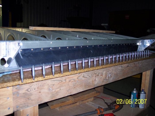 Deburred edges of LH aileron gap fairing and riveted to rear spar.