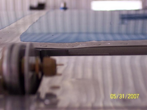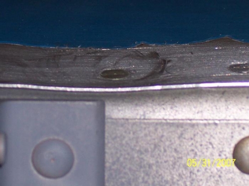 Started riveting lower left wing skin to wing. I tried to reach the rear spar from the inspection hole. That was a big mistake. Rear spar got beat up a good bit. Looks terrible!