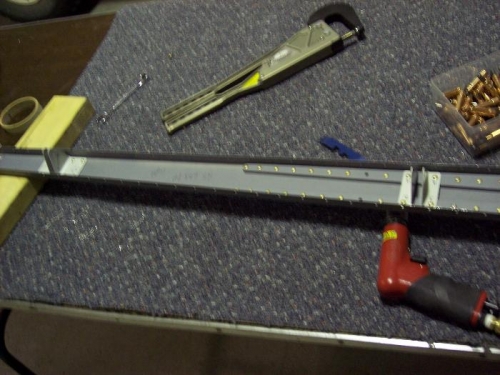 Prepared and riveted elevator hinge brackets HS-412PP and HS-413PP to left side of horizontal stabilizer. Started gathering and cutting lumber to build wing cradle.