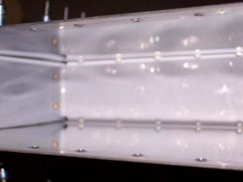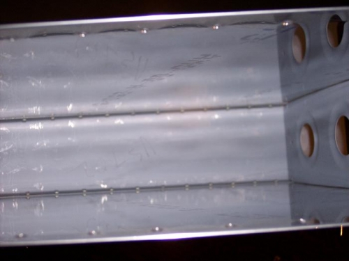 Riveted rudder hinge brackets VS-410PP, 411PP and 412PP to rear VS spar. Riveted ribs to fwd spar. Riveted VS skin to fwd spar and vs ribs