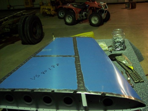 Riveted skin to rear spar and riveted RH side skin to top and bottom VS ribs.