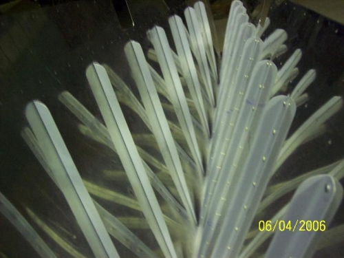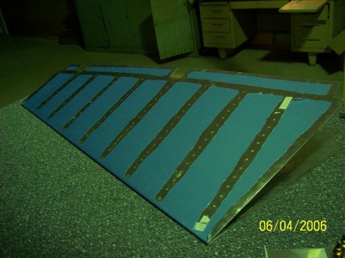 Finished riveting left side stiffeners to rudder skin. Found lumber and hinges to make fixture to bend rudder trailing edge. Made tool and bent trailing edge.