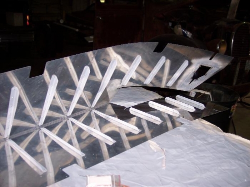 Back riveted stiffeners to LH elevator skin. Fluted R-703 tip rib, match drilled to R-802PP, fitted, clecoed and match drilled R-713 counterbalance skin to R-703. Started to match drill R-801PP skin to 802PP spar web