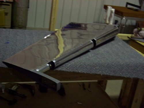 Found solid metal shaft approx 7/8" diameter (steering shaft from Allis Chalmers WD tractor). Cleaned shaft and used to form ruddder leading edge. After considerable difficulty, fitted and riveted rudder leading edge. Installed rod ends. Torqued jam nuts on bottom and center rod ends. Installed rudder counterweight. Removed remaining plastic. Spent most of the time scratching my head...more than usual.