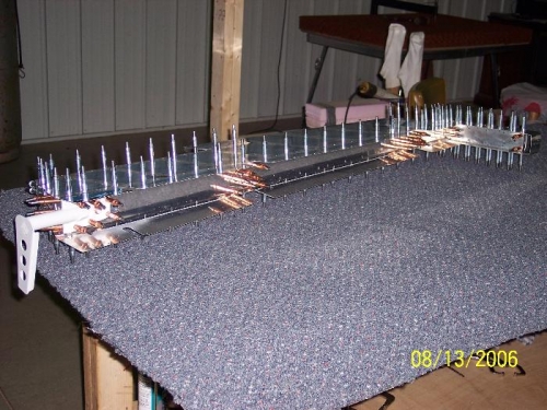Inserted elevator skeleton into elevator skin. Clecoed and riveted skin to understucture. Secured counterweight. Clecoed and drilled E-610PP, 611PP and platenute to E-702 spar. Clecoed E-703 to 704, then clecoed to spar then removed. Drilled hole in counterweight per plans. Assembled skeleton withe both ribs fianl drilled to spar. Clecoed skin and WD-605-1-L elevator horn to rib and spar. Cleco and drill E-606PP to E-705PP. Drilled E-701-L skin to understructure. Disassembled elevator.