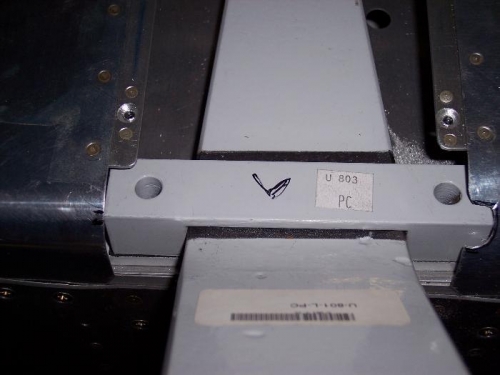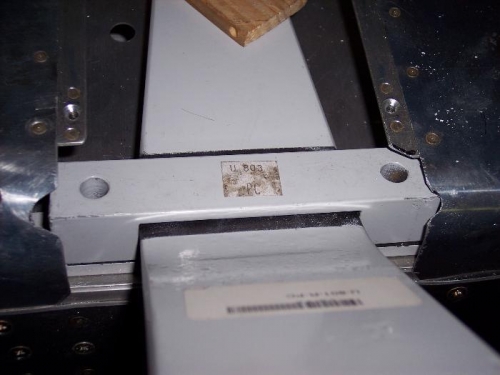 I leveled the fuselage by crawling under and inside the fuselage and leveling the floor per plans. After it was level, I found an outside reference point that I could use without crawling inside. I studied the plans, drawings and builders web sites for any info I could get on installing the landing gear. I bolted the left gear in position through the U-804 inboard attach bracket. I couldn’t get the U-803, outboard attach bracket into position, so studied some more. I used the right side to learn what to file away from the F-850PP skin to clear the corners on the U-803. Then I filed out a little bit of the left side lower skin and re-installed the left gear without the nuts this time. I clamped some aluminum angle to the gear for future measurements.