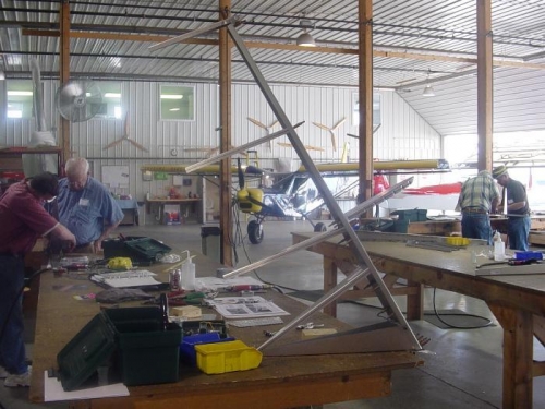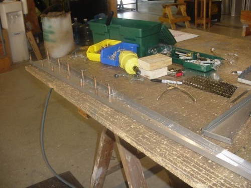Began construction of rudder at Zenith factory rudder workshop.Completed skeleton construction and began skin attachmant.Rear skin is cleco'd in place. Ready to attach nose skin.