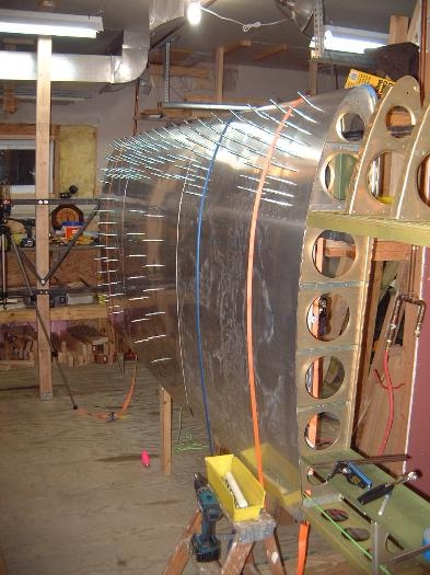 Today I drilled the holes into the third left skin in the nose rib area.