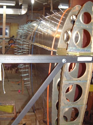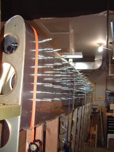 Today I continued drilling on the 4th left skin. I also drilled all of the top skin holes through the main spar.