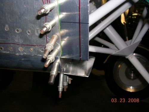 The top of the firewall has 14 places. They straddle the top dead center of the firewall and are placed 3 1/2 inches apart, except for the bottom most position which is 4 inches from the one above it. The reason for the 4 inch placement is to put the fastener as close as possible to the joint where the top and bottom cowl halfs meet.