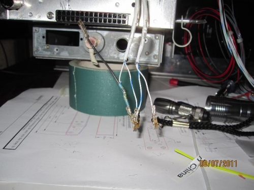 Dick Isherwood brought over the molex crimper. I used it to complete the wiring from the PMA 8000b audio panel to the ICom A200. I also made the jumpers required for pins 11, M, P and 13, using 20 awg wire.