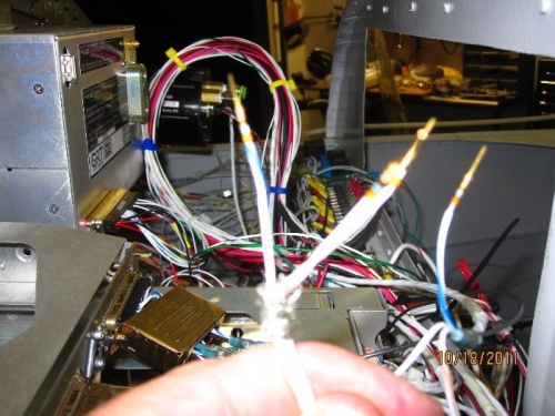 Completed the wiring for the pilot and co pilot mic and headphone jacks to the audio panel, including connecting the grounded shields to each other using solder sleeves.
