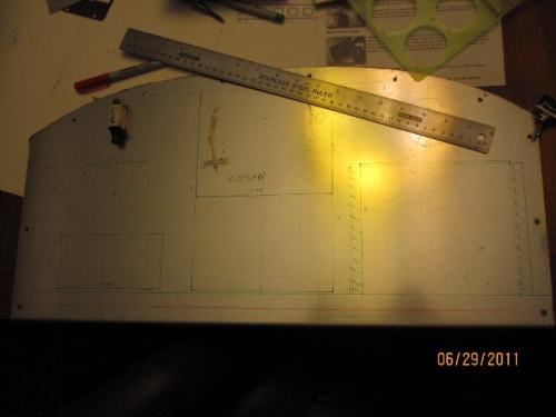 I finished laying out the panel tonight. I used a sharpie to mark the lines where the panel should be cut.