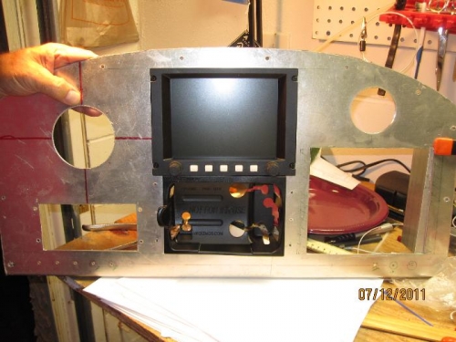 We put the GRT Sport in place and drilled the 4 holes to secure it. I will need to get 4 #i6 screws of the right length to secure it to nutplates that I will install behind the panel to accept the screws.