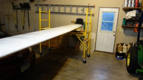 Put wings on fuselage but could not get the pins to install because the wing roots needed to be trimmed. Marked the wing roots with the estimated amount to get them flush by measuring how far off the pin holes were. Removed the wings.