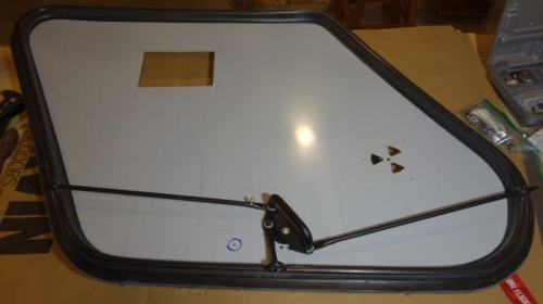 temporarily mounted door latch mechanisms again. Marked and drill pilot hole for key cylinders in door windows. Waiting to get CNC router set up to cut the parially round hole with flat sides so the cylinder won't turn (wish Pipistrel had laser cut these in the lexan window for me. Never CNCed lexan before)