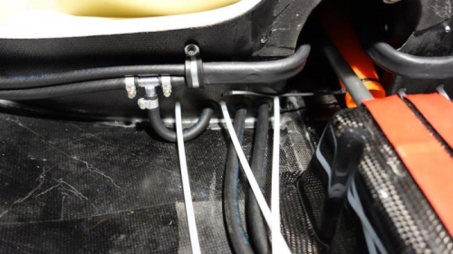 Removed firewall gas line pass thru plate from fire wall. Removed the fuel line hose clamps and hoses. Attached a string to the hoses and pulled them out. Removed fuel selector by removing mounting screws. Disconnected fuel lines from fuel pump. Removed left and right fuel inlet and outlet lines. Cut heat shrink tubing on fuel line and pulled all the lines out. Removed plastic fuel pipe wrap from old fuel lines and transferred that to new lines. Attached string to engine supply and return lines and pulled them through the firewall. Attached to the pass-thru plate using hose clamps. Put more Loctite on hose clamp screw threads. Re-installed fuel selector again with more Loctite. Ran hoses to back of plane and installed new heat shrink tubing to keep lines away from moving control rods. Reattached lines to fuel pump and left and right secondary tanks and fuel filters.