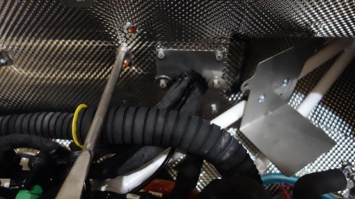 Moved Radiator overflow tank to oil filler (left) side of firewall so coolant level could be observed when checking oil. This was a tight fit and just barely fit behind the oil tank lines. I had to re-drill the tank bracket so it would be level on opposite side of the engine mount.