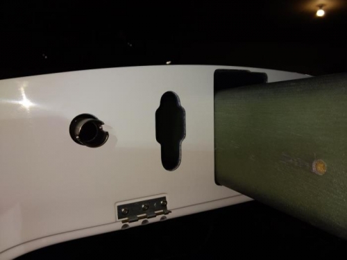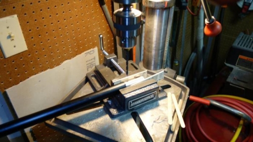 Removed the airbrake handle and clutches, riveted on eatch side the hole I just drilled, drilled and riveted the remaining holes. Re-installed the airbrake handle and pushed the wings back together. Tested airbrakes.