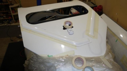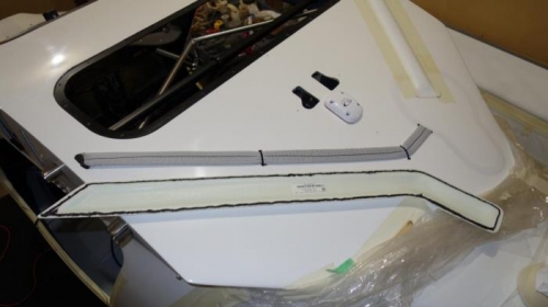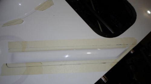 Used masking tape to trial fit parachute strap covers. Sanded down end of cover flush with fusalage were wings attach. Filled all the holes (zip tie holes and where straps go through top of fuselage) with silicone rubber. Used masking tape mark were covers attached to fuselage. Left masking tape on one sided, flipped the cover over and ran a bead of black silicone rubber around the edge. Flipped the cover back in position, pressed them down squeezing out the silicone, wiped off the silicone and then taped down with masking tape. Let dry overnight. In the morning, I noticed a few areas that had had not taped, pulled away and when I removed the tape, even more of the cover pulled away from fuselage. I removed both covers and found that the silicone rubber was not completely dry and a few areas that were very thin on silicone rubber. I removed all the silicone rubber (easy because it was not completely dry). Sanded lightly with very fine grit paper were covers will attach to fuselage (dont' want them falling off prematurely). Applied a thicker coat of silicon rubber and did press down as hard so I left a slightly thicker coat of silicone between the cover and the fuselage. (I squeezed almost all the silicone out last time). I didn't worry about getting all the silicone cleaned up right up to the edge of the covers and Taped down the covers making sure all seams were taped. This time I let the silicone dry for over 24 hours (removed on the third day). This time when I removed the tape, the cover were glued down all around and secure. I used my finger nail to remove the excess silicone around the edges of the covers