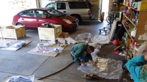 Cleared Garage, Unpacked parts from fuselage and unwrapped packaging plastic. Attached Tail skid.