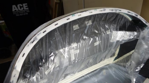 Removed rough edges from windshield frame, sanded down fuselage joint in windshield channel. Taped doors and nose in preparation for painting. Just learned that if I install the aux windshield heater, I have to put slots in the bottom of the windshield frame before I paint. Every option adds time to the build