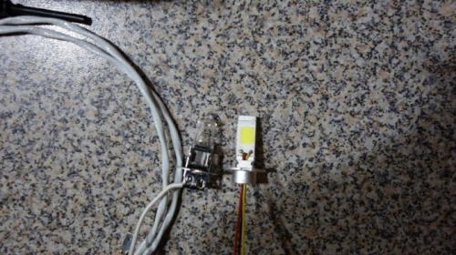 Found a 3,000 lumen 30W H3 mount LED Headlight for $13 on line so I swapped it for the higher current yet dimmer 55W incandescent light that came with the landing light in the kit. I had to cut off the heat sink (the light housing is metal and should dissipate the heat from the LED just fine. Automobiles usually use a plastic headlight). The light comes with a current limiter which I dis-assembled and will connect aircraft grade wiring to.