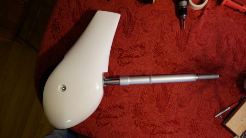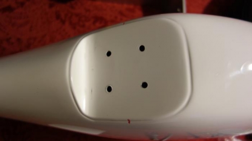 Measured and drilled holes in nose wheel faring. used a square and blocks of wood to align faring to nose wheel bracket, installed. Tight tolerance from were the top faring bracket ends and the faring starts to curve upward and still keeping the bracket nose wheel bolt inside the bolt recess. It took lots of patience measuring. Drilled one hole, verified location and angle, then use d bolt and nut to lock the bracket into the faring and drilled the remaining 3 holes, installed a 2nd bolt and nut and drilled the wheel bolt holes in the faring recesses