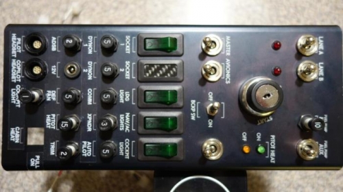 Because I decided to added defroster fans after I had wired the electrical panel, I had to re-do some work on the panel. Added Breaker for defroster fan and 12v power jack for accessory power to the center electrical panel. Cut most zip ties, Used spare ground leads to connect to defroster fan power connector and 12v accessory power. Cut a new 3 gang bus bar and installed to get power to the new defroster breaker. Cut of .25 spade connector to socket switch/breaker and added 2nd wire for +12v DC power to power jack. Soldered wires to jack. Added 2 pole Jr. Mini Fit connector for power to defroster.