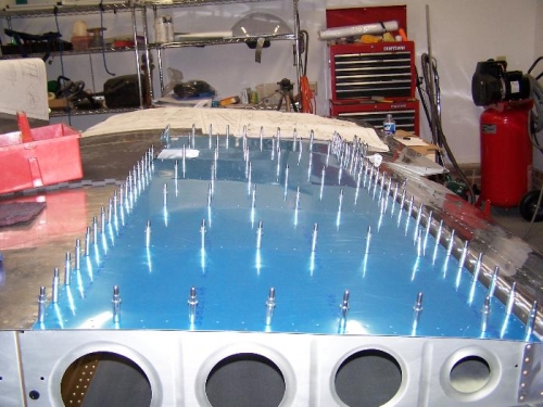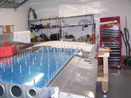 It's amazing how well the matched holes line up on the last wing skin. It gives confidence that the wing was built true. I'll drill and dimple but will not rivet until later.