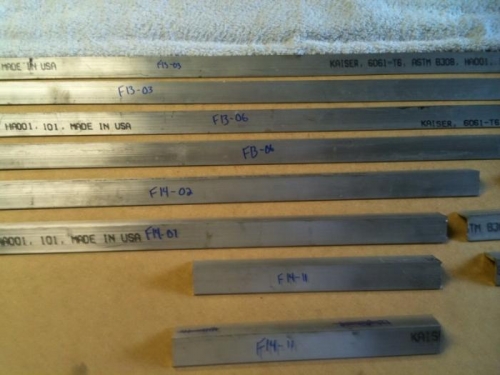 Cut legnths out of 1" x 1" x 0.125 6061 T6 Aluminum for the following parts: